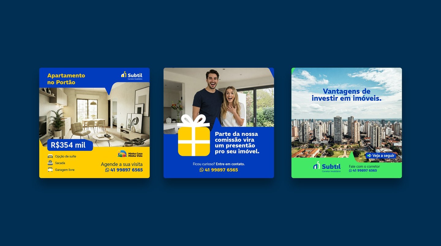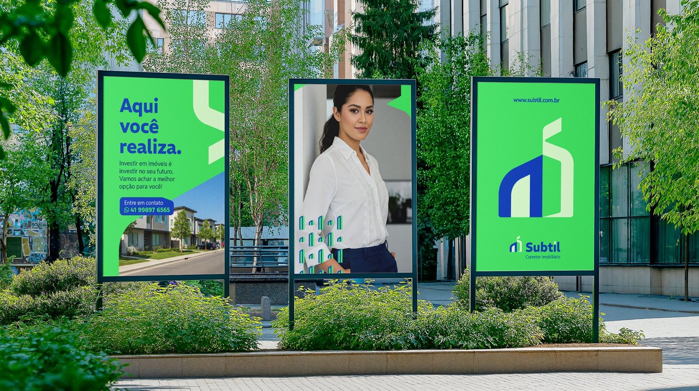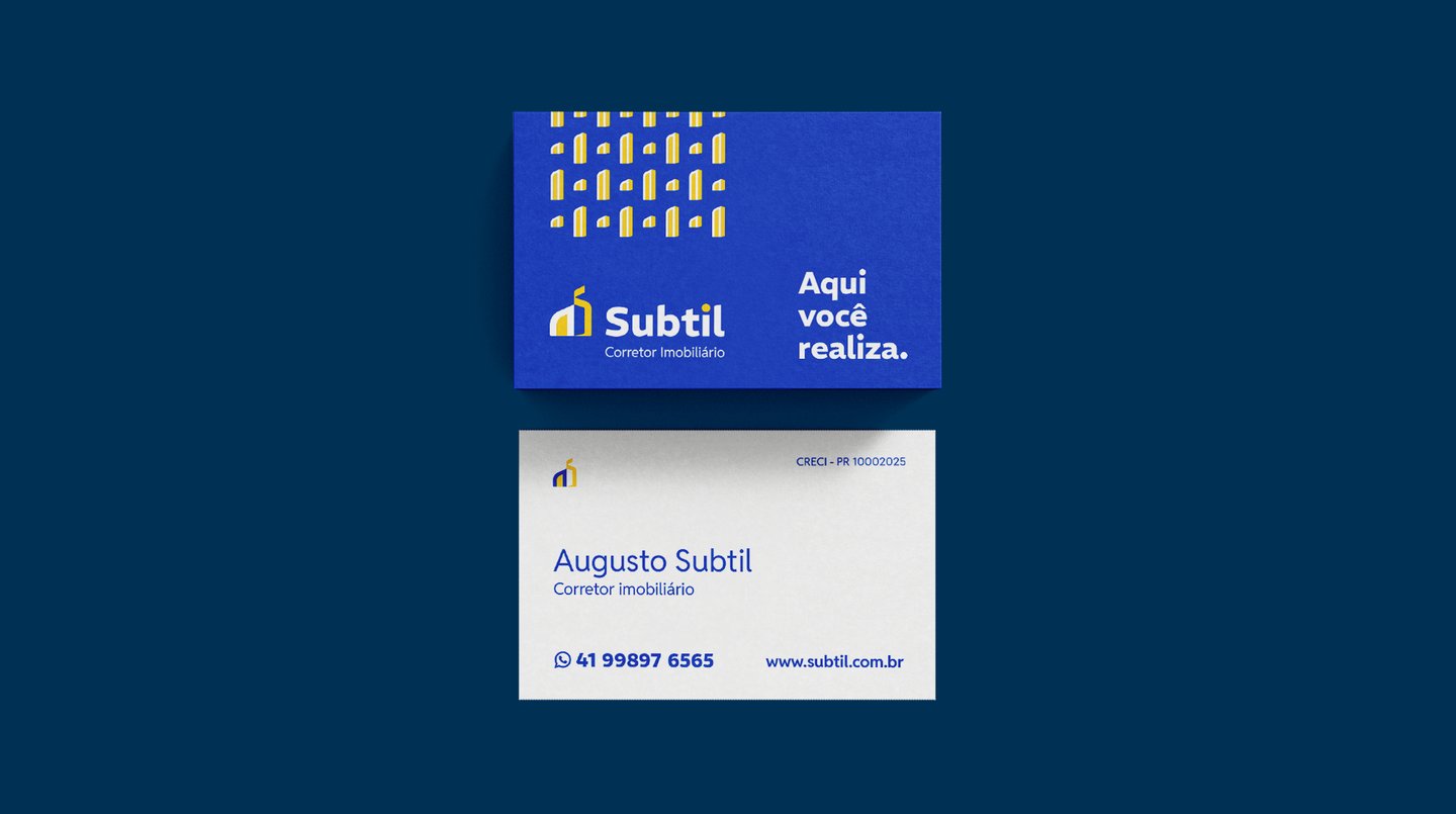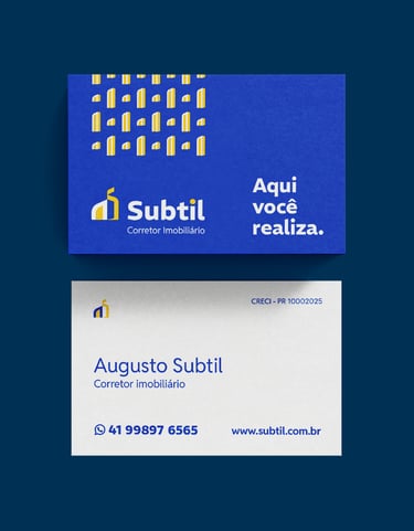 O resultado é uma identidade visual sólida, coerente e cheia de significado, preparada para posicionar a marca Subtil como sinônimo de confiança e proximidade no mercado imobiliário.