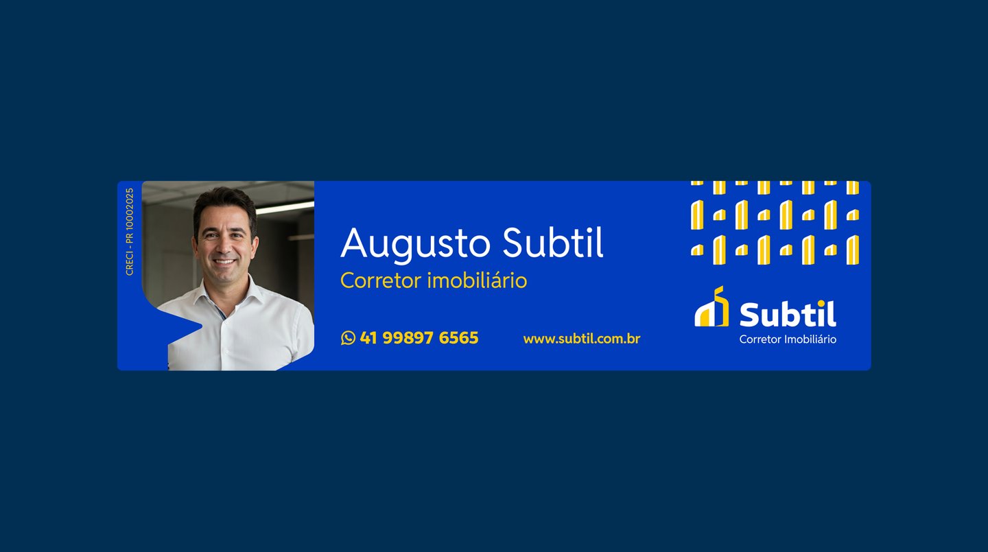 A trajetória da marca Subtil nasce do propósito de Augusto Subtil, corretor de imóveis em São José dos Pinhais, Paraná, de transformar a compra e venda de imóveis em uma experiência mais humana e consultiva. Atuando com imóveis residenciais populares, de médio padrão e terrenos, seu foco está tanto em compradores do primeiro imóvel quanto em investidores.
