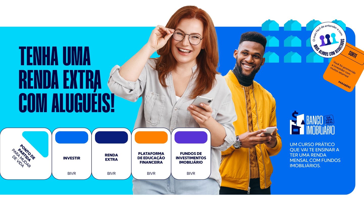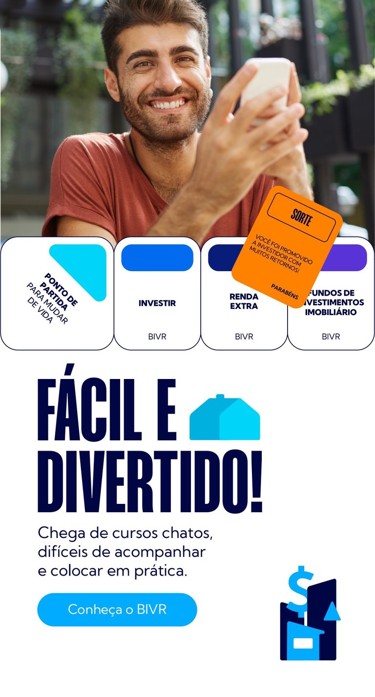 O BIVR (Banco Imobiliário da Vida Real) é um curso da plataforma CEO DO MEU DINHEIRO que transforma o mundo dos investimentos imobiliários em algo acessível, simples e divertido. Pensado especialmente para quem está começando do zero, o curso ensina como receber uma renda mensal por meio de fundos imobiliários, mesmo sem possuir um imóvel próprio. Com uma proposta moderna, nostálgica e descomplicada, o BIVR oferece uma jornada de aprendizado leve e prática, conectando pessoas acima de 35 anos ao universo dos investimentos de forma responsável e eficaz. Seu objetivo é claro: tornar-se o melhor curso de investimentos imobiliários para iniciantes no Brasil.