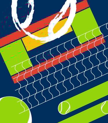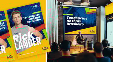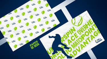O sistema tipográfico traz duas famílias modernas e descontraídas, fortes e alinhadas à personalidade da marca. O design se completa com grafismos inspirados em elementos icônicos do esporte, como quadras, redes e bolas, sempre aplicados com coerência para garantir unidade visual.